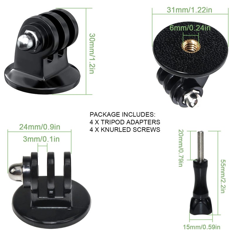 Tripod Mount Adapter Aluminium Tripod Adapter Tripod Mount Adapter Tripod Adapter with Knurled Screws Camera Mount Accessories Tripod Adapter for GoPro Hero 10, 9, 8, 7, 6, 5, DJI Osmo Action Cameras
