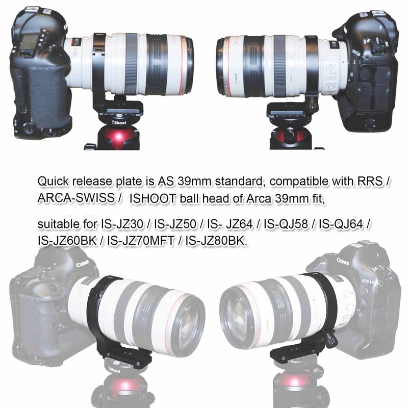 - Quick release plate is AS 39mm standard, compatible with RRS / ARCA-SWISS / KIRK / WIMBERLEY / MARKINS / SUNWAYFOTO / KANGRINPOCHE / BENRO / SIRUI / MARSACE / ISHOOT ball head of Arca 39mm fit, suitable for iShoot IS-JZ30 / IS-JZ50 / IS-JZ64 / IS-QJ58 / IS-QJ64 / IS-QJ64-FD / IS-JZ60BK / IS-JZ70MFT / IS-JZ80BK.