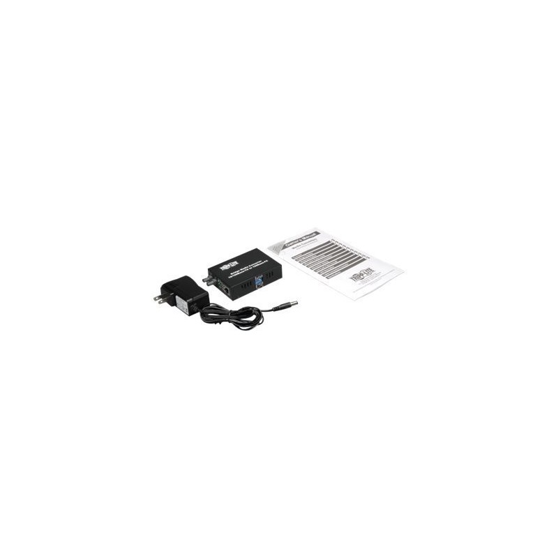 Tripp Lites N784-001-ST, 10/100 Media Converter, is an economical way to extend the distance (up to 2Km) of network nodes by converting Cat5/6 UTP cables to Fiber Optic. The Media Converter features automatic MDI/MDI-X configuration, and the UTP port senses the network speed automatically as well. Dip switches allow half or full duplex operation on the fiber port. Power supplied by either AC-DC adapter, or USB connection (switch selectable). Tripp Lite one year limited warranty.