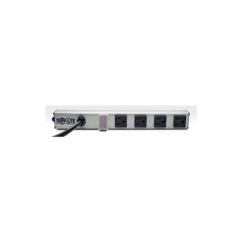 Tripp Lite 4 Outlet Bench & Cabinet Power Strip, 12 in. Length, 6ft Cord with 5-15P Plug (PS120406),Black/Gray