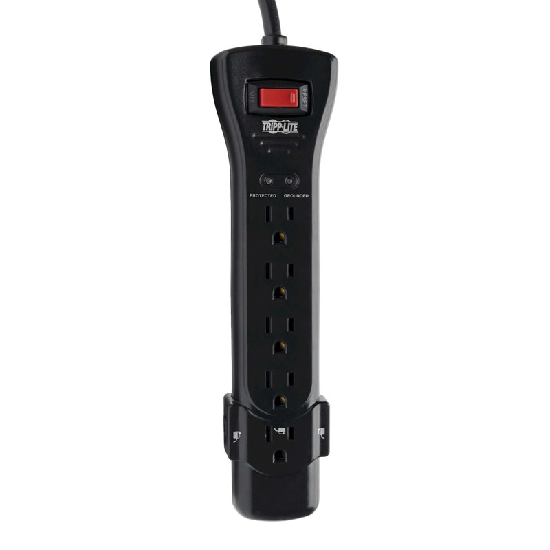 Tripp Lite 7 Outlet Surge Protector Power Strip, Extra Long Cord 25ft, Right-Angle Plug, Black, Lifetime Limited Warranty & $75K INSURANCE (SUPER725B)