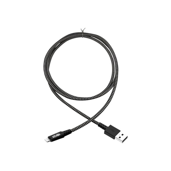 Tripp Lite Braided Lightning Cable – Lightning to USB Cable (M/Apple Certified Lightning Cable, Charge/Sync, 10 ft, Aramid Fiber, Grey, 2-Year Warranty (M100-010-HD)