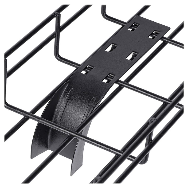 - ORGANIZE: Keep cables straight and organized when exiting or entering cable tray. Made from resilient black powder-coated metal designed to last. Maintains a bend radius while dropping cables through the tray’s wire mesh opening