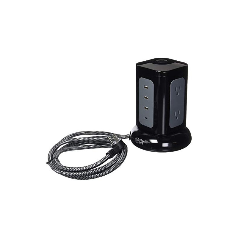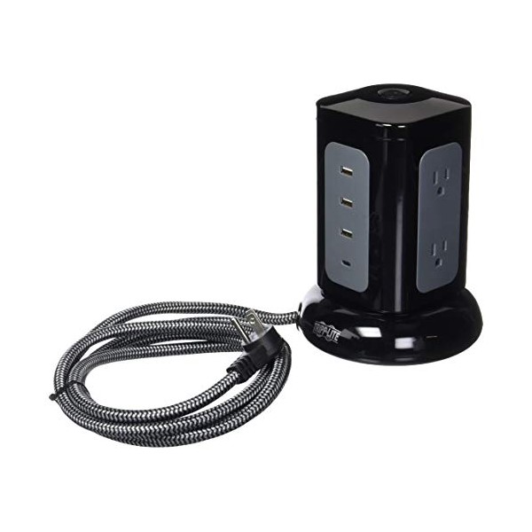 Tripp Lite Surge Protector Tower 6-Outlet 3X USB-A 1x USB C 8ft Cord Black (TLP606UCTOWER)