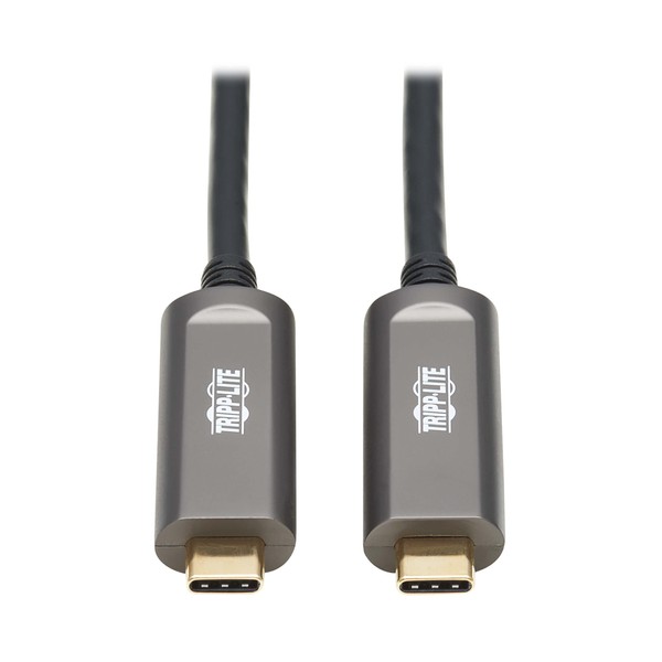 Tripp Lite USB-C Fiber (10 Gbps) Data Cable, USB 3.2 Active Optical Cable, Male to Male, Black, Plenum-Rated for in Wall & Ceiling Installations, 49 Feet / 15 Meters, 3-Year Warranty (U420F-15M-D3)
