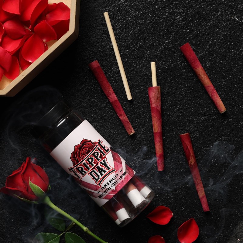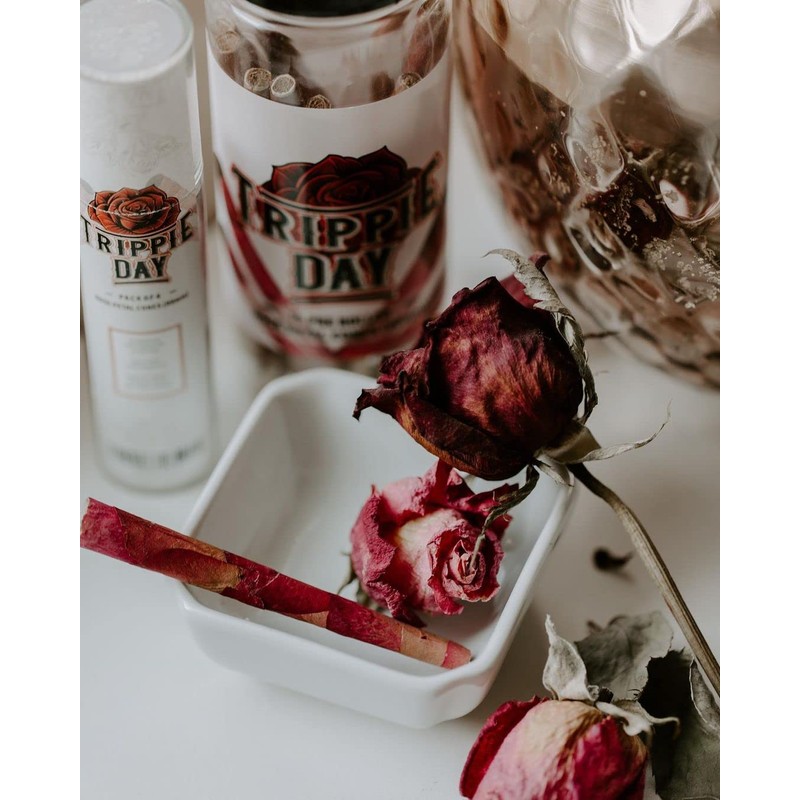 Trippie Day Rose pre rolled cones are all-natural. The beautiful organic rose petals were handpicked, cleaned with purified water, and individually rolled for a cleaner, more enhanced way of smoking. Our all-natural rose petals,rolling paper, and filters are biodegradable, keeping up with our high eco-friendly standards. Roses products contain no harmful chemicals, pesticides, dyes, artificial flavoring, artificial colors, or artificial glues so you can fully taste and enjoy what you're smoking - a slow-burning, sustainable product made for smokers. The rose aesthetic is a major plus.