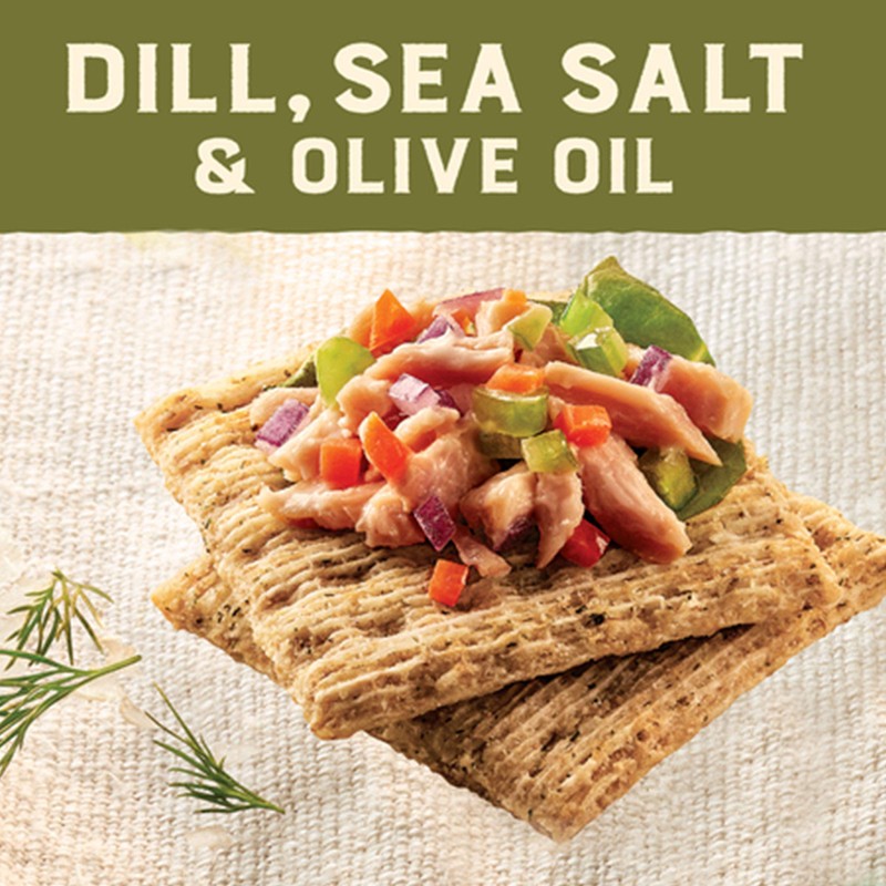 - Dill, sea salt and olive oil flavors complement the whole grain wheat base