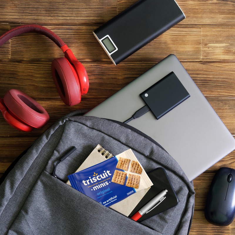 - Twenty 1.06 oz snack packs of Triscuit Minis Original Whole Grain Wheat Vegan Crackers