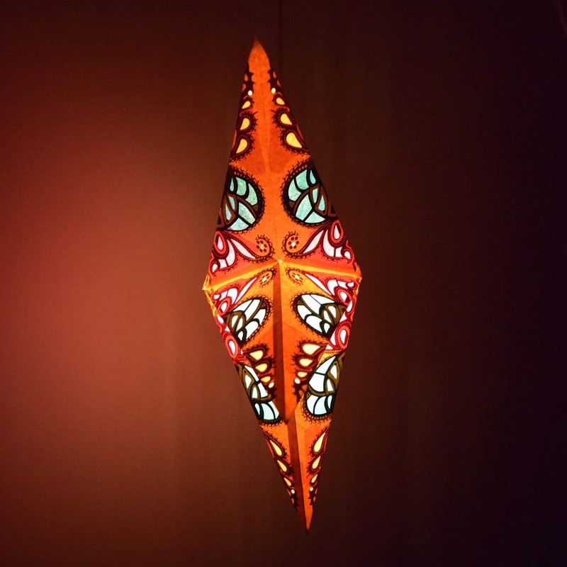 Take the stars from the night sky into your home! Add unique illumination with our decorative paper star lights. We have over 70 styles of paper star lamps perfect for any occasion including Christmas and Diwali. Suspend a couple of paper star lights from your living room ceiling and admire the glimmer of little lights cast on the walls. Dangle a paper star lantern in your favorite window and it will appear to fall from the sky. Paper lampshades make great home decorations.