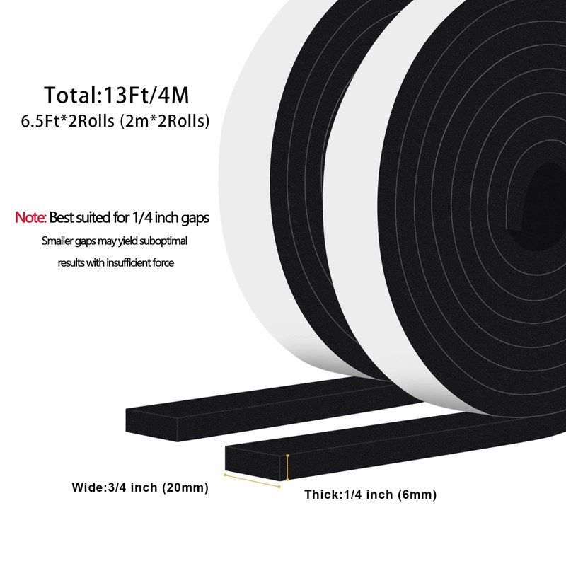 - 🟠SAVE ON ENERGY BILLS- Sealing gaps with this doors windows AC insulation foam seal strip helps to reduce energy consumption by keeping your room cool in summer and warm in winter, thus reducing electricity bills. You get two rolls of self-adhesive foam strip with 13 ft in total in each package, providing enough material for multiple seals. And it's easy to install and apply without extra tools, just simply peel and stick it on for a tight seal. It's a hassle-free and money-saving solution!