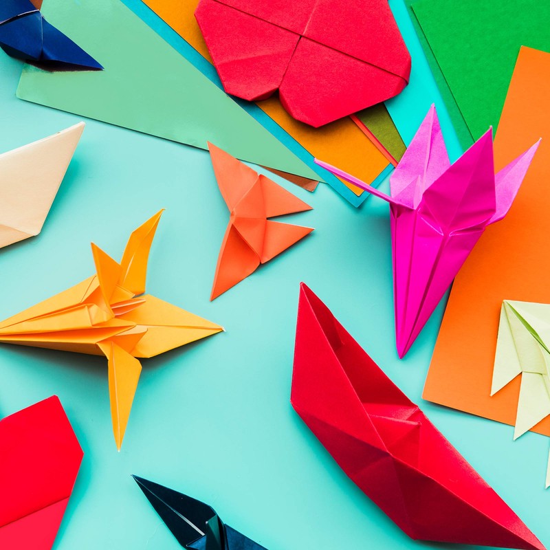 Origami is the art of paper folding without scissors or glue. The paper is folded to create a small two or three-dimensional figure.