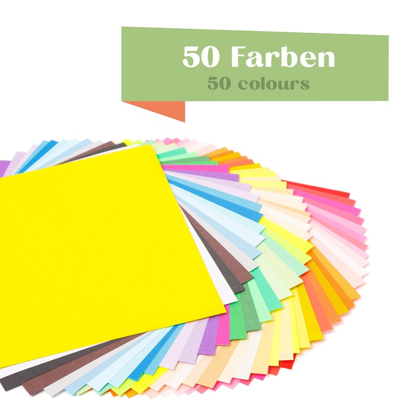 - Double-sided original set: our square coloured paper is dyed on both sides. You will receive 220 sheets in two popular sizes, 110 sheets in 15 x 15 cm and 110 sheets in 10 x 10 cm, in 50 vibrant colours.