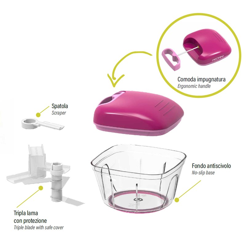 Manual pulley chopper ideal for chopping vegetables, preparing suffering, easy to disassemble and clean.