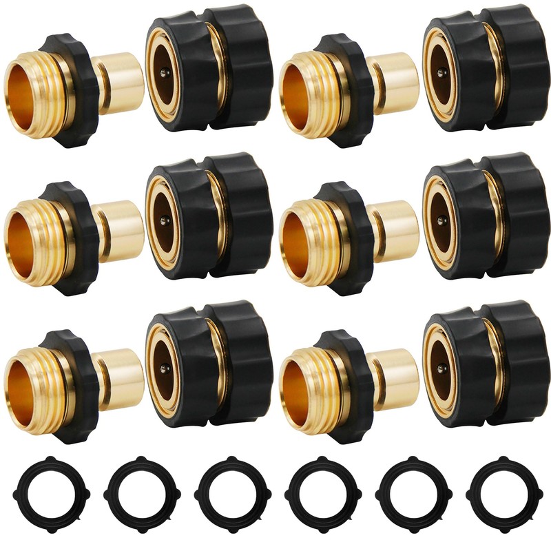 Triumpeek 3/4" Garden Hose Connector, 12 Pieces Garden Hose Quick Connect Fittings, Male and Female Quick Release Garden Hose Connector | Triumpeek
