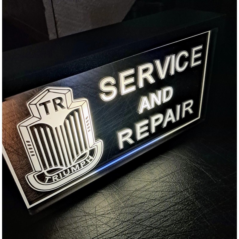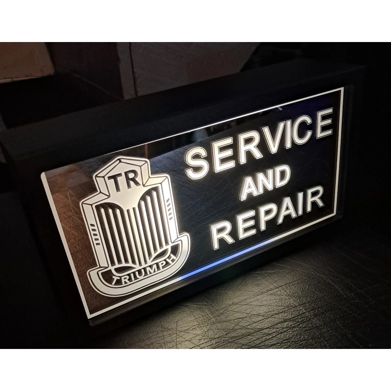 TRIUMPH TR SERVICE AND REPAIR Mirrored Full Color LED Lighted Sign With Remote