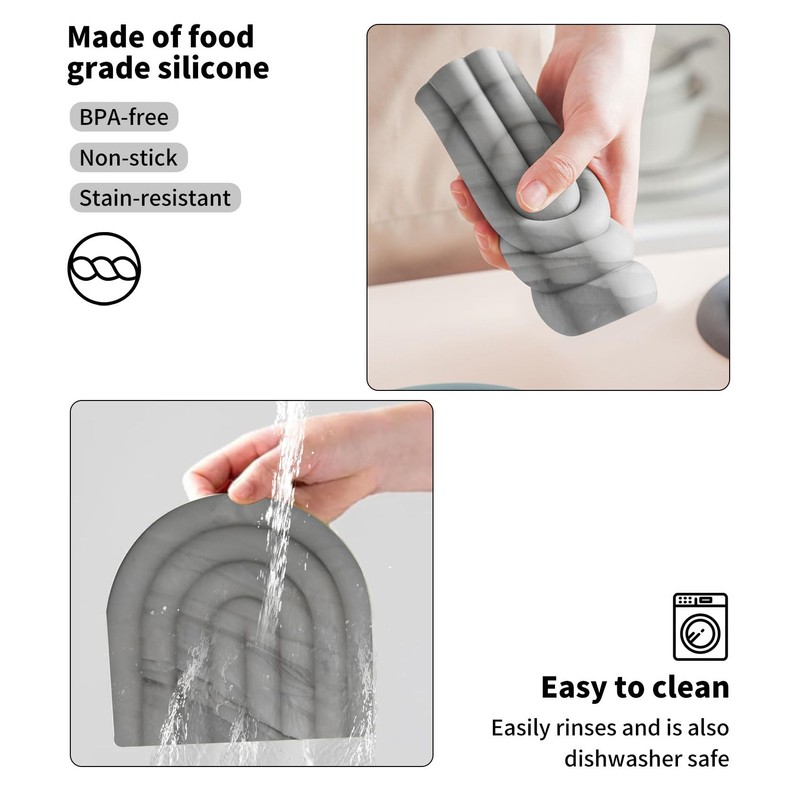Food grade silicone trivet mats are hand washable, dishwasher safe and waterproof.