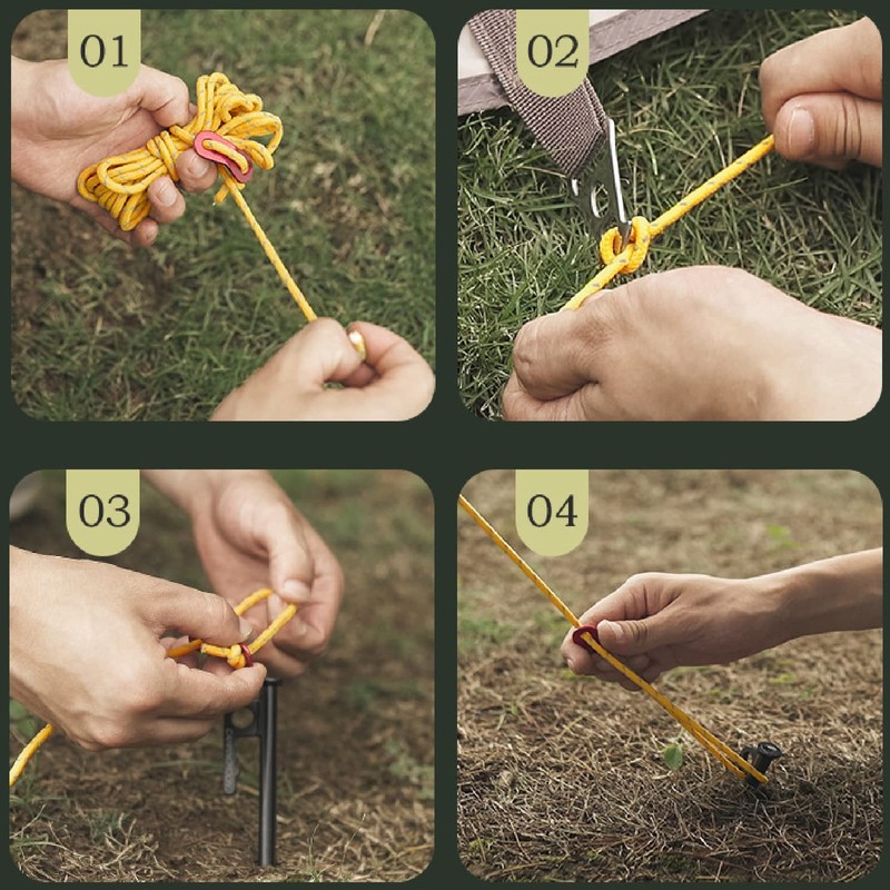 - Guy Rope: Made of high quality and durable material, with strong tensile force, the camping rope will not deform, and it has excellent stability. Reflective elements increase visibility and prevent snagging