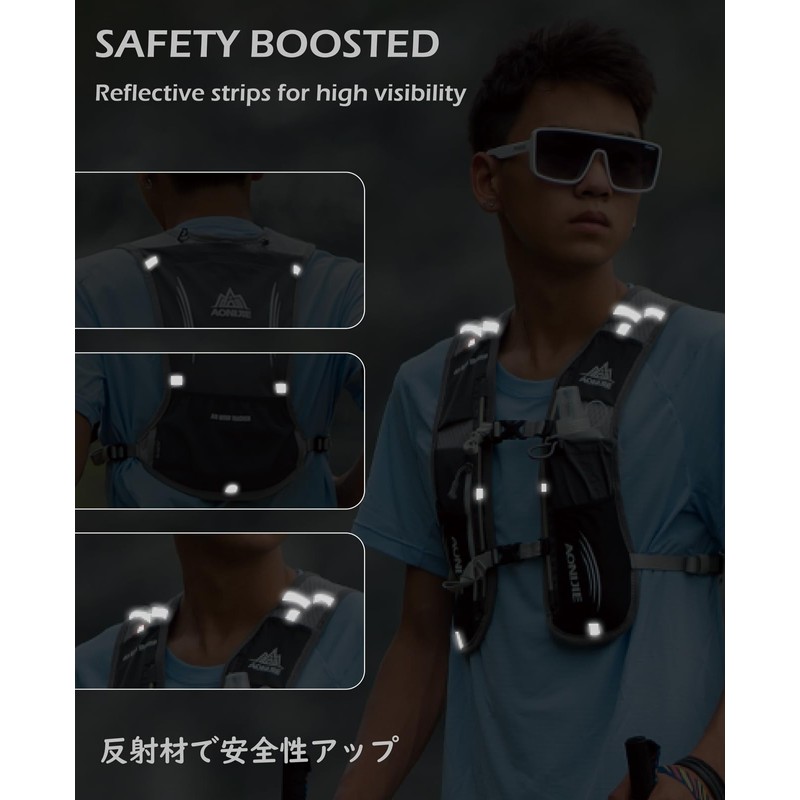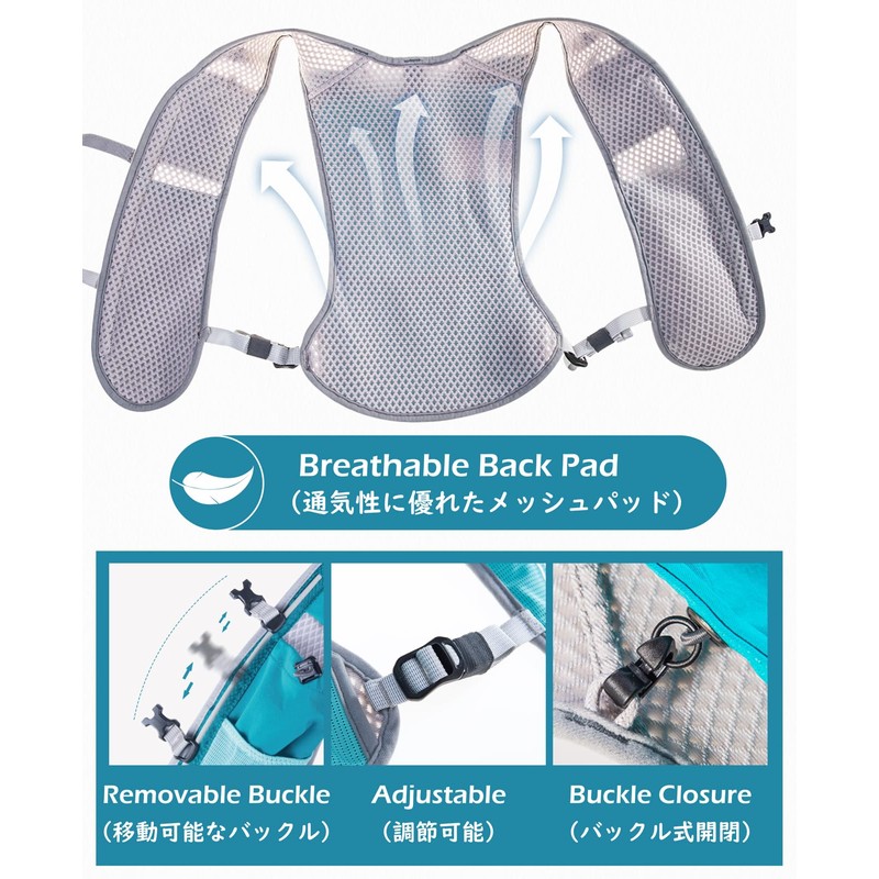 • Breathable and Adjustable: Soft and thin mesh padding of hydration vest for optimal comfort and absorb sweat efficiently. The flexible adjustable straps help race vest hug your body nicely