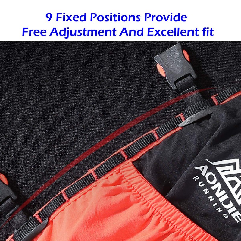 - ✅ ADJUSTABLE -- Dual adjustable sternum straps and nine fixed posistions allow you to adjust the hydration vest freely to fit different figure. Breathable, moisture-wicking fabrics treat you with the cool comfort, reflective straps enhance your visibility on early morning or evening