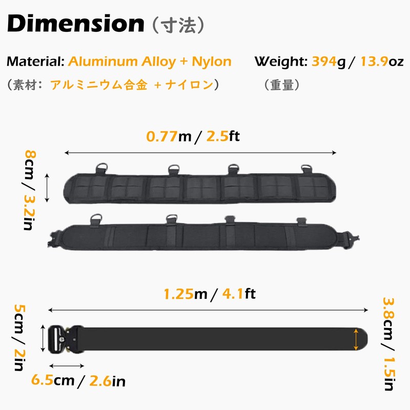 - Adjustable Size: The belt length can be adjusted to the size that fits you. Weighing only 13.4 oz (394 g), it is lightweight and helps reduce fatigue
