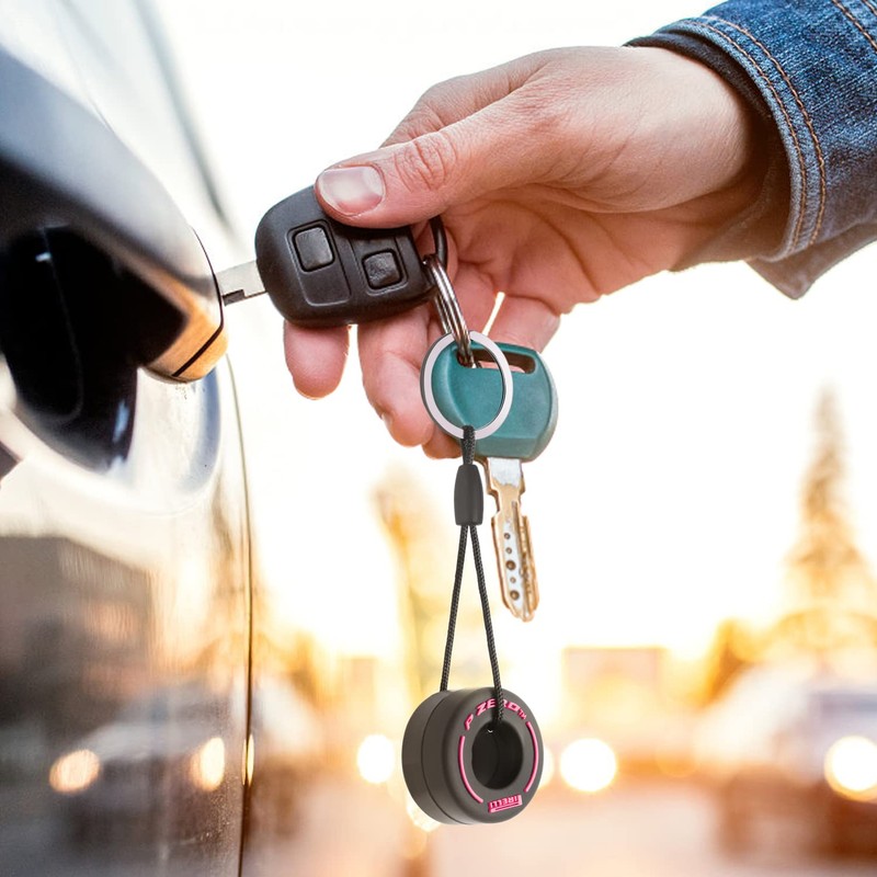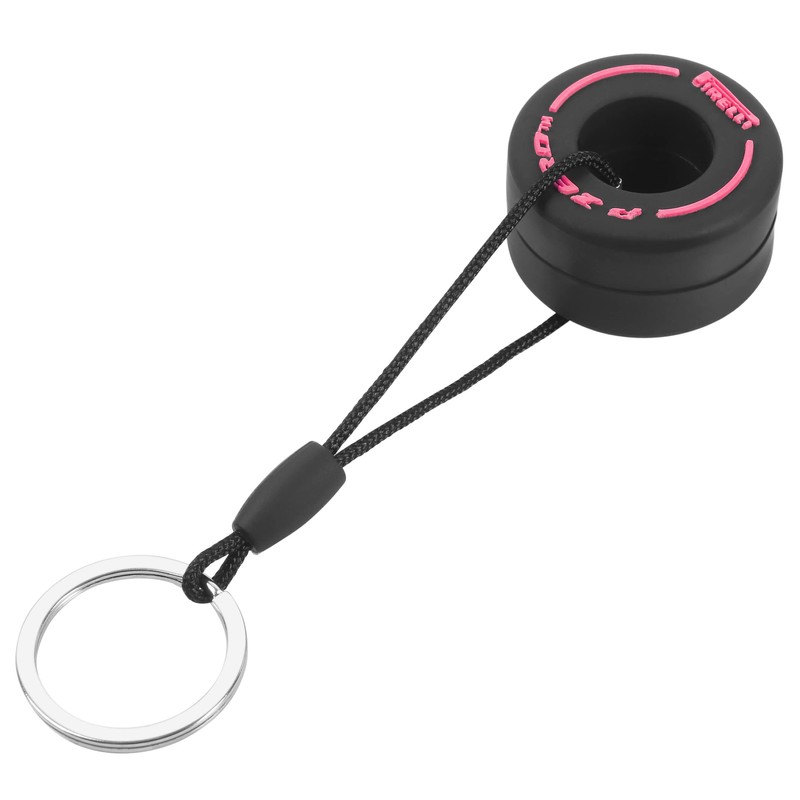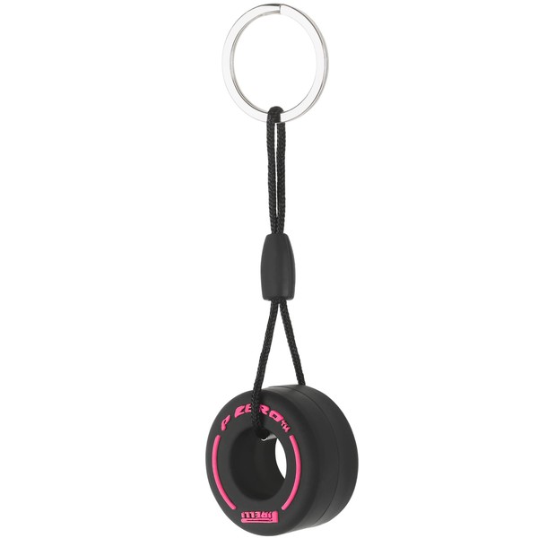- MATERIAL; Sturdy and crafted from high quality soft rubber, it is hard wearing perfect for everyday use. The tyre is black with hot pink writing around the rim which can perfectly match your keyrings. Each keychain comes with a strong fabric chain and stainless-steel ring to attach to your keys, clothing, or the loops on your bag. It can be removed if you wish to use this for display purposes.
