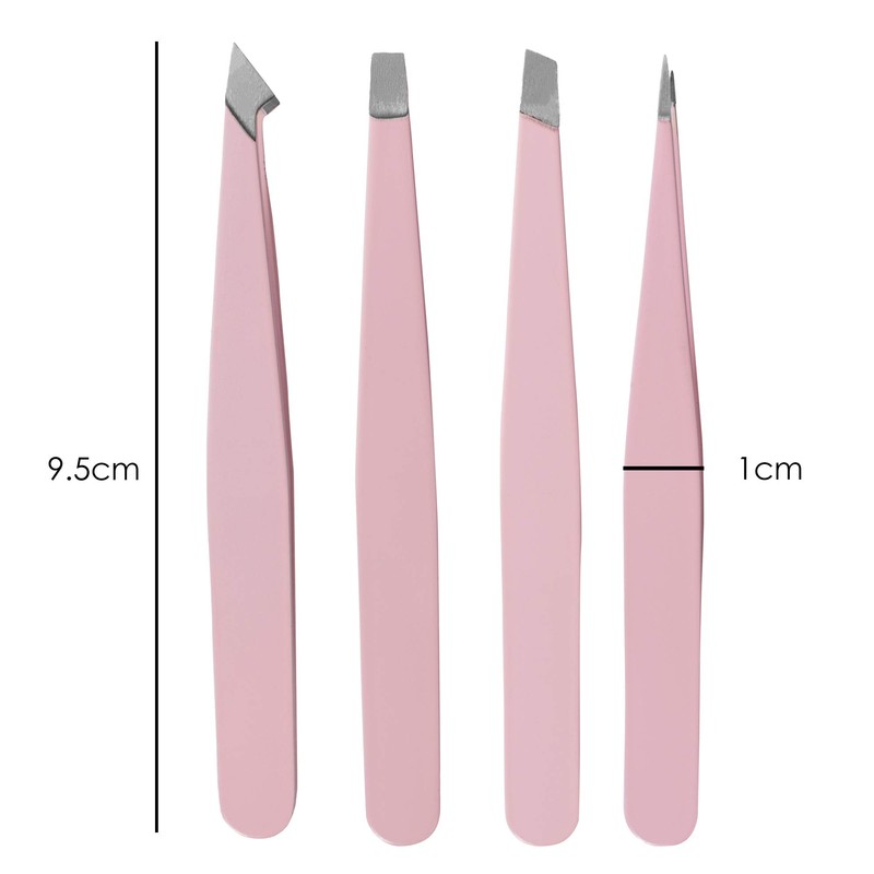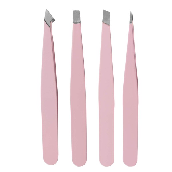 - 4-piece tweezer set: you will receive a 4-piece set of professional eyebrow tweezers made of stainless steel with the following shaped tips: Pointed, oblique and flat