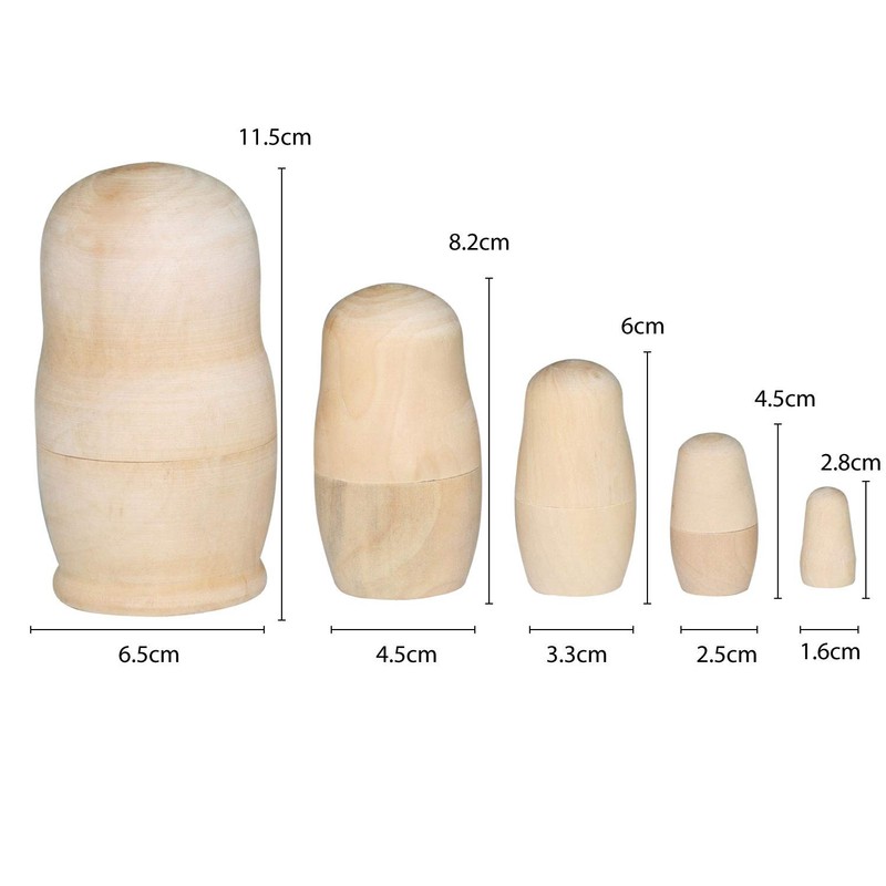 TRIXES Unpainted Russian Dolls Nesting Eggs x5 Layer Wooden DIY Nesting Dolls Craft Creative Blank Unpainted – Plain Unpainted Crafting Nesting Dolls – 5 Sizes