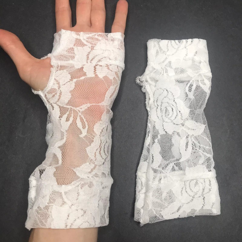 Trixy Xchange White Lace Fingerless Gloves Wedding Arm Cuffs Dead Bride Coquette Costume Gift