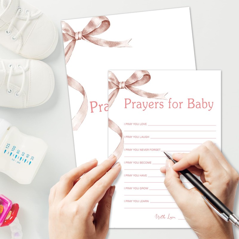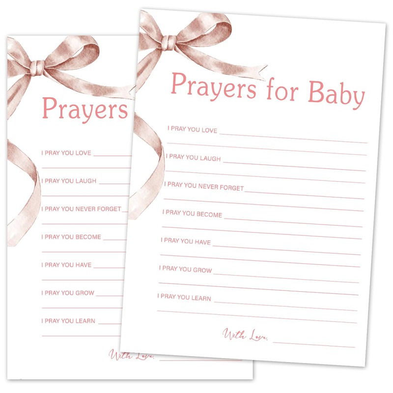 TRKAE Prayers for The Baby - Baby Shower Game Set, 30 Pink Bow Baby Shower Game Cards, Game Cards for Baby Announcement Gender Reveal, Baby Shower Party & Activities Supplies -P11
