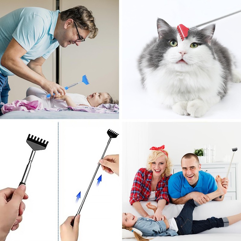 • Multifunctional: These back scratchers are lightweight, comfortable for scraping, and the telescoping design can address every itchy area you have, such as head, back, legs. Colorful back scratchers are available in black, red, and blue, all with same-color handles. The silver back scratcher handle is equipped with a pen clip at the end, making it convenient and practical.