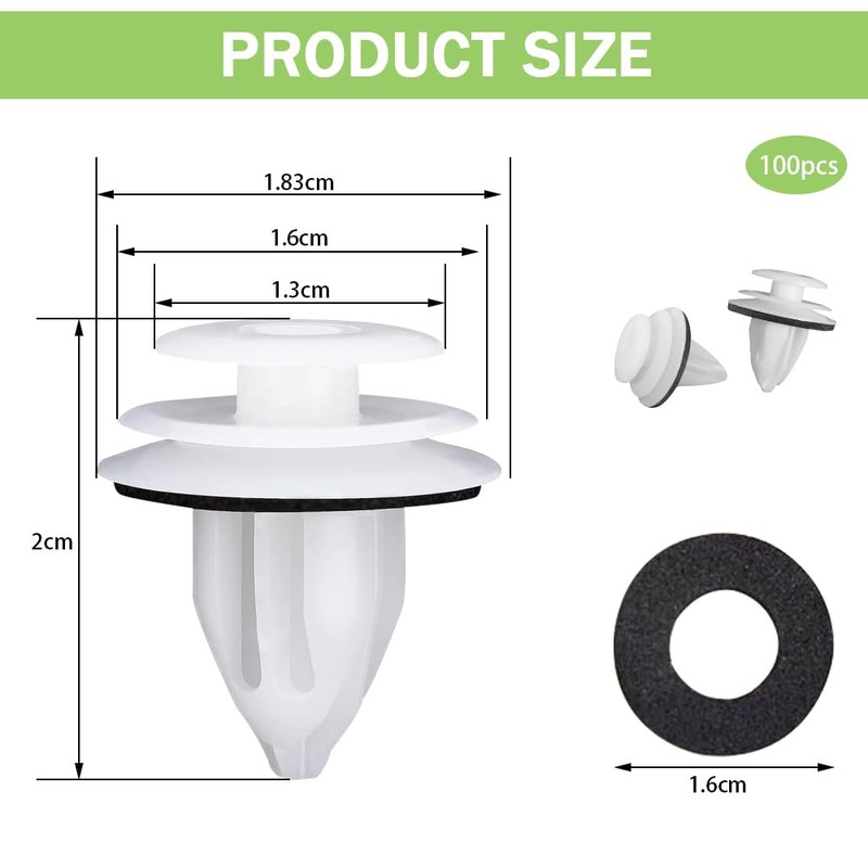- Quantity and size: you will receive 100 car door panel mounting clips with the total size of each clip 1.3 cm x 2 cm/0.5 inch x 0.8 inch. A sufficient quantity, universal size, suitable for most car accessories, used to replace parts for car door panels, can meet your use and replacement needs well.