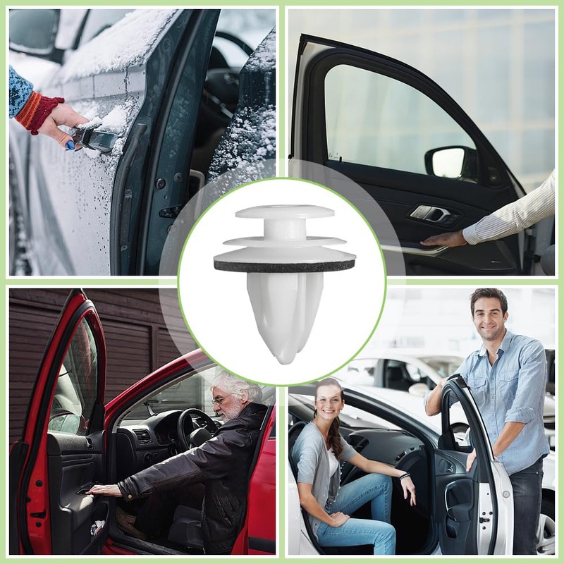 - Durable Material Made of high quality plastic material and sponge seal, this plastic car door trim clips with black sponge seal is wear-resistant, corrosion-resistant, not easy to break and durable. The plastic material is paired with sponge gaskets, which is resistant to vibration and damage, and has good stability.
