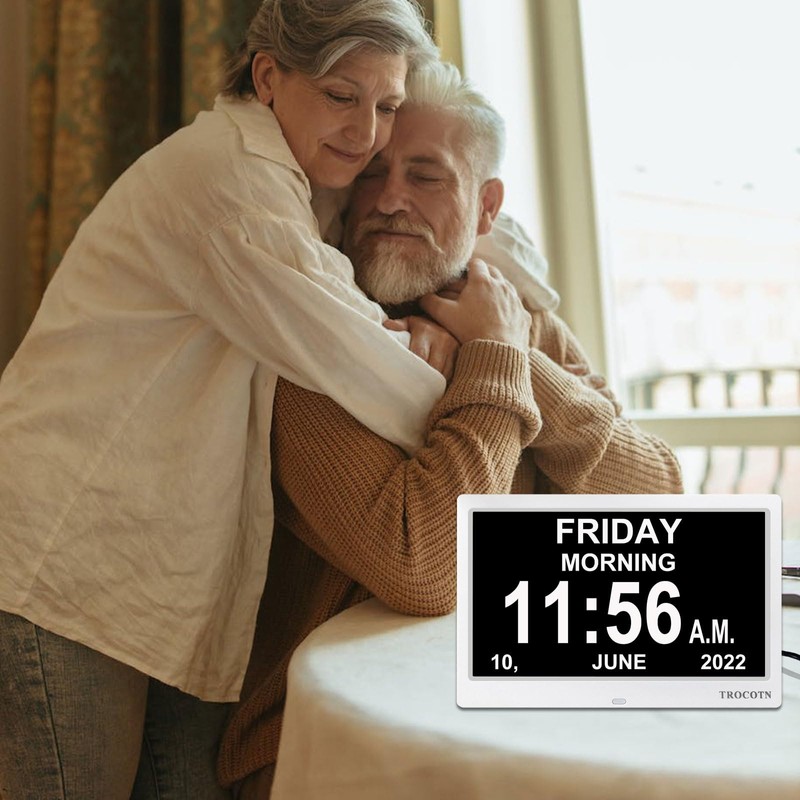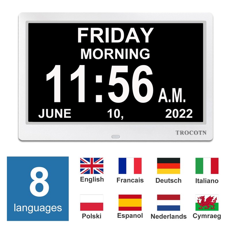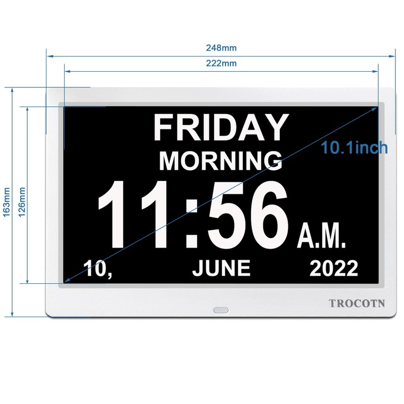 TROCOTN 10 Inches Digital Clock Day Clock Large Display Alarm Clock Wall Clock (White)