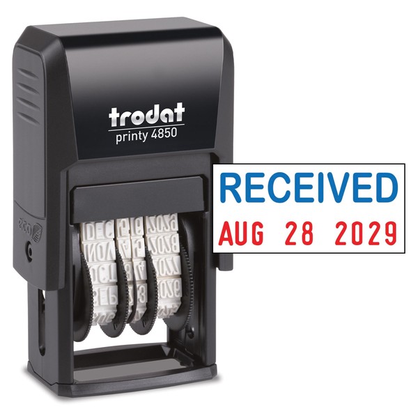 Trodat Printy 4850 Dater Stamp with English Phrase Received – Self Inking, Red Ink Date and Blue Text