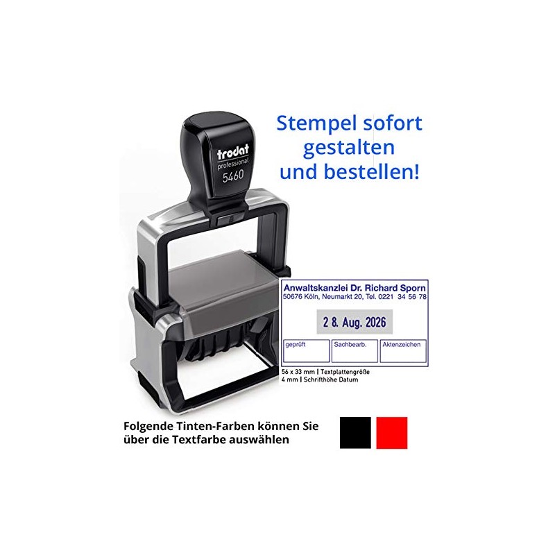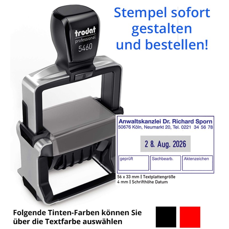 Trodat Professional Text & Date Stamp 5460 56 x 33 mm 5 Lines and Date Attention German Days of the Week in Various Colours Design Online (Metal)