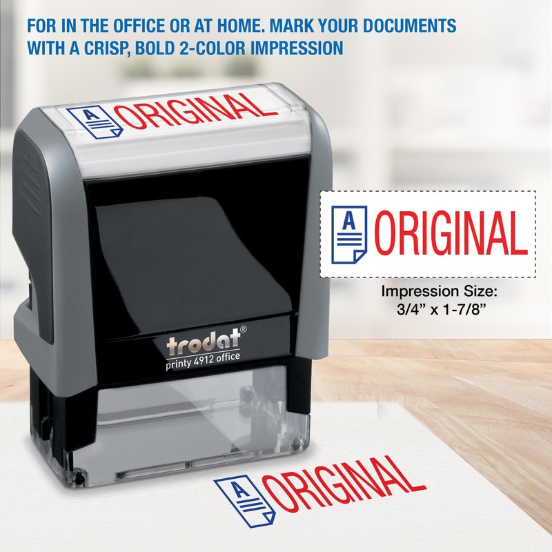 Trodat Stamp 4912 Office Printy with English Text Original – Self Inking, Red and Blue Ink, Impression Size 3/4" x 1-7/8"
