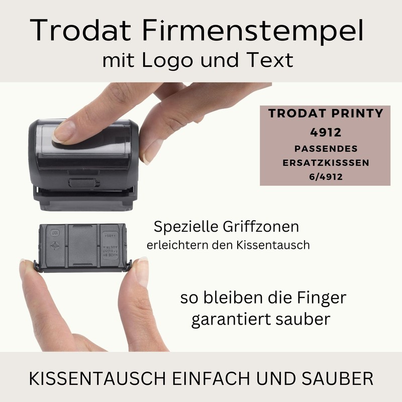 Trodat Trodat Firmenstempel mit Logo und Text – Printy 4912 Personalisierter Stempel inklusive Grafik und Wunschtext, Selbstfärbend, Abdruck 47 x 18 mm