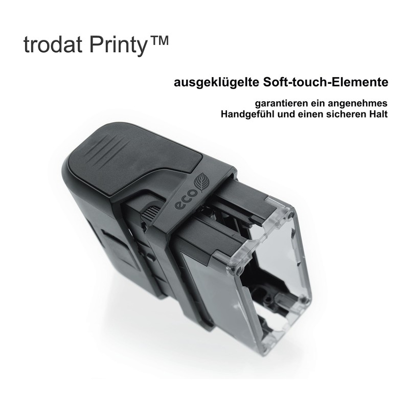 - GENERATION 4.0 des Trodat Printy – kompakt, leicht, deutliche Materialeinsparung gegenüber Vorgängerversion sowie hoher Anteil Pre- und Post-Consumer Recyclingkunststoff, ergänzende Investitionen in WWF Klimaschutzprojekte