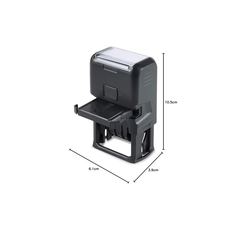 • Automatischer Stempel mit Datum und Text vermerkt einen Eingang in Ihren Unterlagen – für perfekte Ordnung im Büro