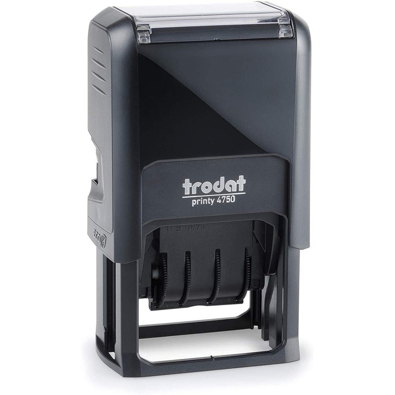 Der Original Trodat Printy 4750 ist der praktische Datumsstempel mit Lagertext plus Signatur- bzw. Vermerkfeld – 4750L1 „Eingegangen“, 4750L2 „Bezahlt“ und 4750L7 „Gebucht“.Formgebung und spezielles Kunststoffmaterial sorgen für angenehmen und guten Griff. Die Sperre horizontal vorne vermeidet ein unabsichtliches Blockieren während des Stempelns.Der Trodat Printy der Generation 4.0 liefert einen sauberen Abdruck. Neueste chemisch-technische Entwicklungen erzielen noch gleichmäßigeren Farbauftrag und -abdruck und vermeiden ein Austrocknen des Kissens besser als zuvor.Dieser praktische Bürostempel ist viele Jahre und tausende Abdrücke im Einsatz ohne der Notwendigkeit dabei das Kissen zu wechseln.Sollte nach längerer Zeit oder intensiver Nutzung dennoch ein Kissenwechsel stattfinden, so erlauben zwei spezielle Griffzonen das Austauschen ohne Berühren des Farbspeichers – für rt saubere Finger.Die Stempelfarbe ist dokumentenecht nach DIN14145-2. Das heißt, der Abdruck des Trodat Printys trocknet schnell und bleibt wischfest. Er kann nicht ohne Spuren zu hinterlassen entfernt werden, die Farbe ist lichtecht und verblasst daher nicht. Farben und Zeichnung verlaufen unter Wassereinfluß nur minimalst und sind gegenüber bestimmten Chemikalien beständig.Die Trodat Printy Produktserie 4.0 ist klimaneutral. Dieses Ziel wird in drei Schritten erreicht. Ein kompaktes, modernes Produktdesign erlaubt wesentliche Einsparungen der verarbeiteten Materialien. Der Trodat Printy 4.0. ist um ca. 30% kleiner und deutlich leichter als sein Vorgänger.Durch Einsatz von Pre- und Post-Consumer Recyclingkunststoff sowie Verwendung von 100% Ökostrom wird der CO2-Fußabdruck in Folge um bis zu 49% gegenüber dem Vorgänger reduziert. Zuallerletzt kompensiert Trodat einen verbleibenden unvermeidbaren CO2-Fußabdruck durch Investitionen im vom WWF empfohlene Gold Standard Klimaschutzprojekte..