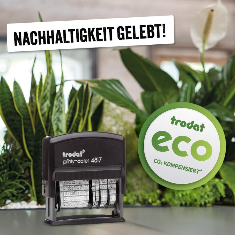 Seit 2013 produziert Trodat mehr als 70 seiner meistverkauften Produkte mit dem technisch höchstmöglichen Anteil an Recyclingkunststoff um ihren CO2-Fußabdruck zu reduzieren.