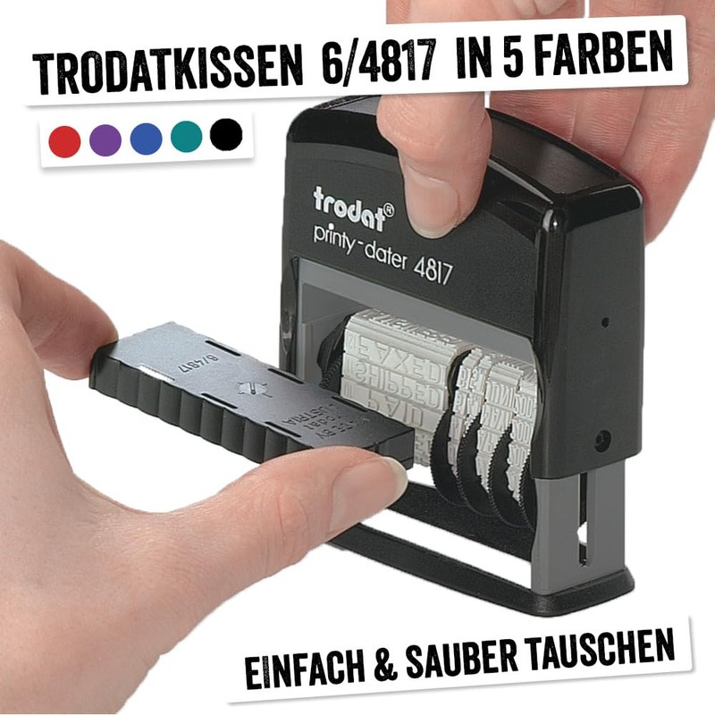 Der Trodat 4817 ist der praktische Helfer, um Schreiben und Dokumente im Büro sofort zu ordnen. Fertige Texte kombiniert mit Datum helfen, alle Unterlagen in der Buchhaltung, im Rechnungswesen, bei Posteingang oder allen sonstigen administrativen Tätigkeiten gleich in die richtigen Ordner abzulegen, bzw. Geschäftsunterlagen mit den korrekten Vermerken an die richtigen Abteilungen weiterzuleiten.