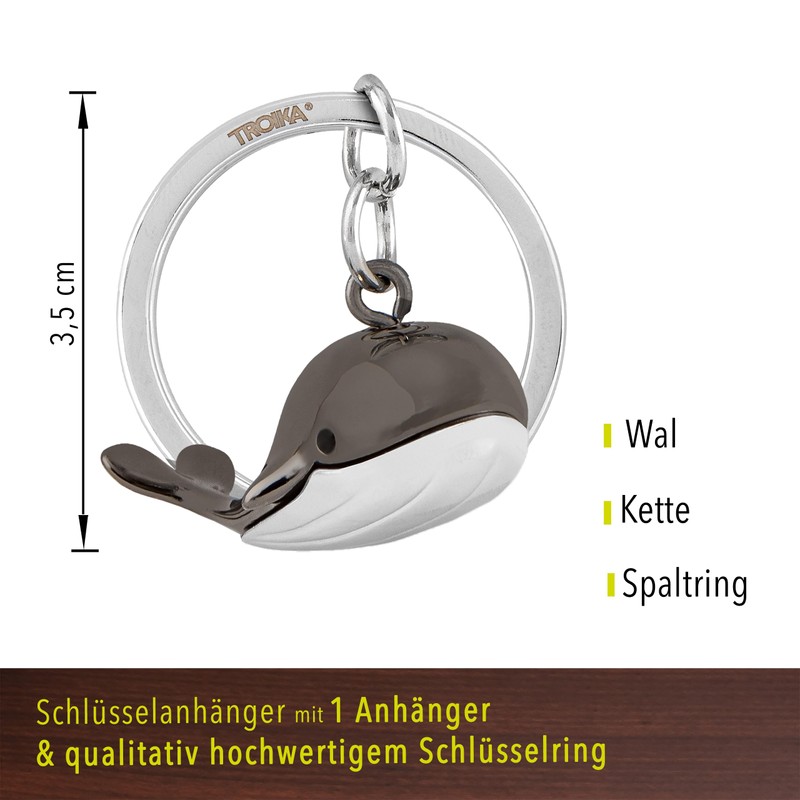- Key Ring, Whale, Shiny, Gunmetal, Grey/Silver