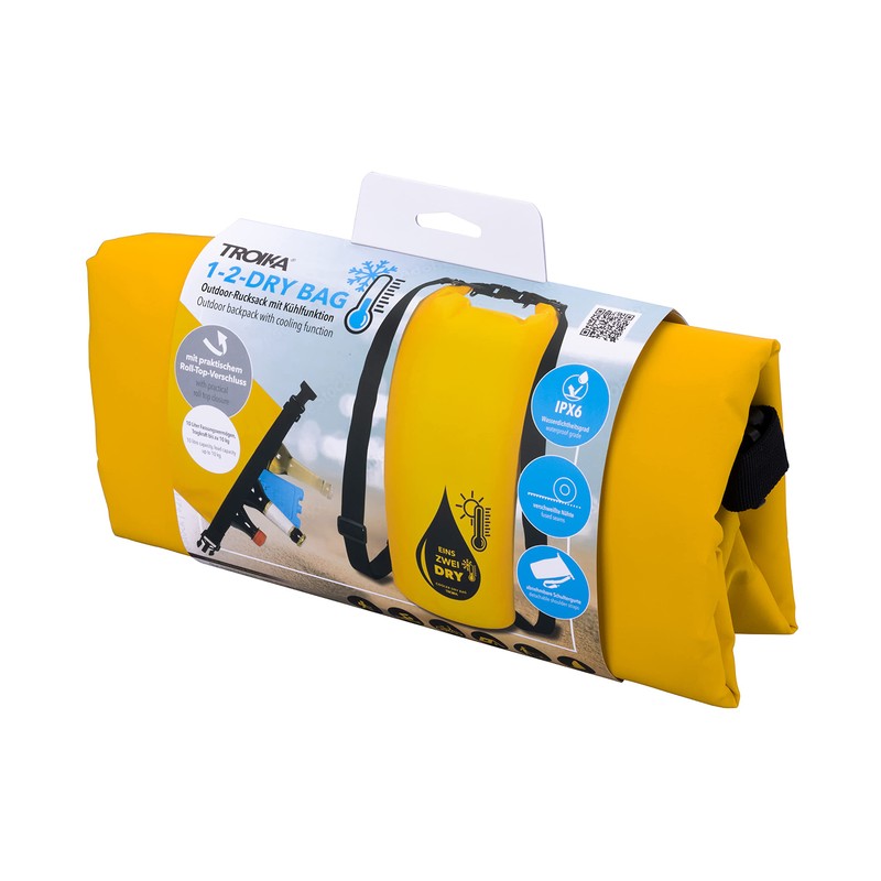 Troika RUC03/YE Outdoor Backpack with Cooling Function and Roll-Top 1-2 Drey Bag Polyester in Yellow/Black, yellow / black, Modern