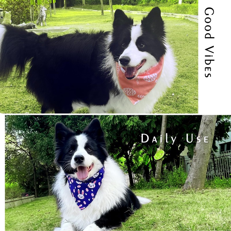 - [EASY USAGE]: The Easter dog scarves are suitable for dogs with all kinds of neck girth. If you have a small pet, it doesn't matter, fold the dog scarf twice more and it can also be used.