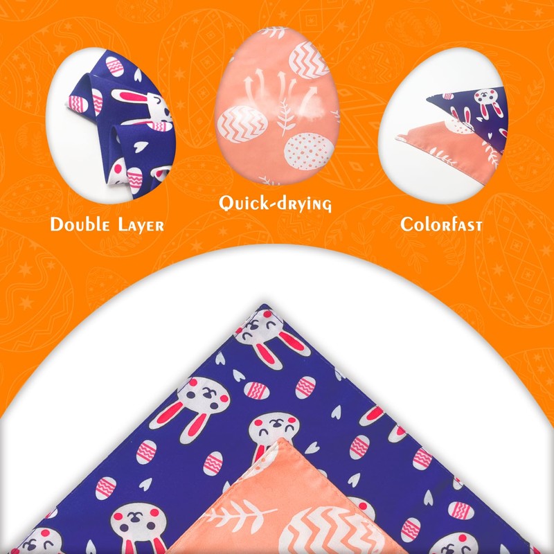 - [CLASSIC DESIGN]: These two dog bandanas feature bunny and egg patterns, which both are classic Easter elements. These dog bandanas can be used by your dog or cat for Easter decor. They are also good ideal for photo shot, parties and dogs gift.
