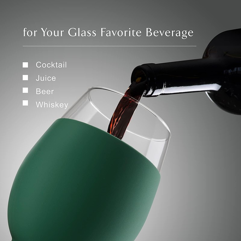 Tronco 20oz Stemless Wine Glasses Set of 4, Reusable Wine Glasses with Silicone Sleeve, Dishwasher Safe & BPA-Free, for Red & White Wine, Cocktails, Home Bar, Parties, Birthdays, Gifts
