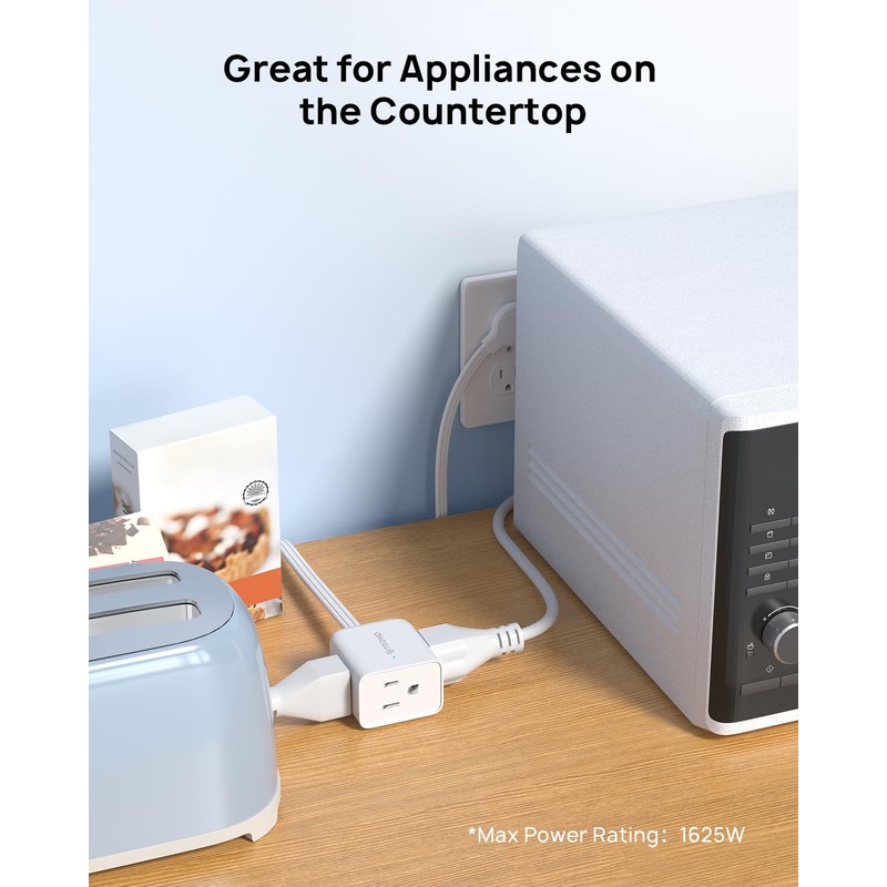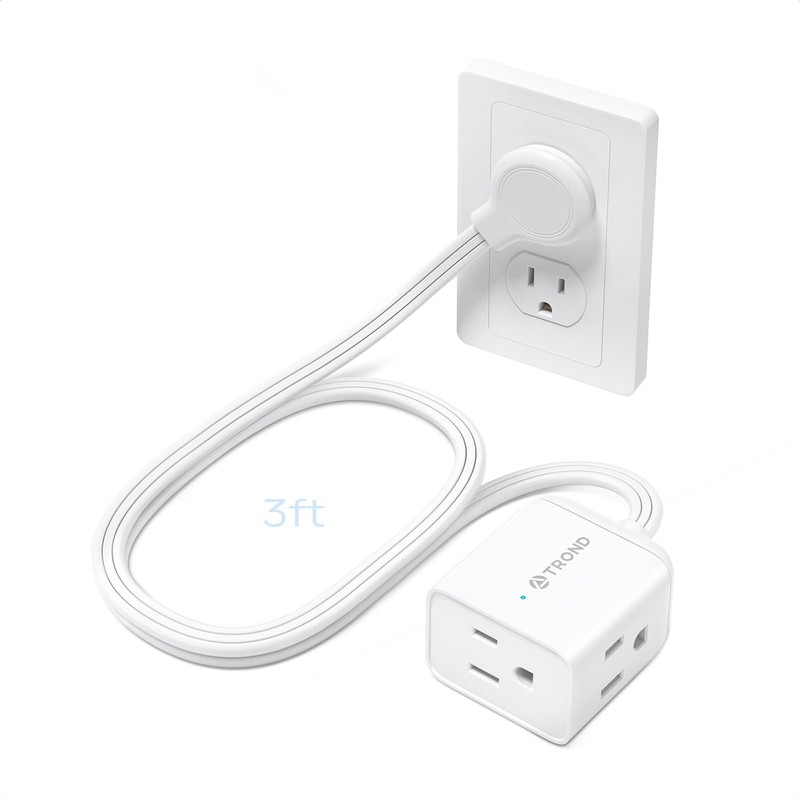 - Elegante diseño cuboide de 3 vías. A diferencia de los cables de extensión tradicionales, el cable de extensión blanco de aspecto inteligente cuenta con 3 tomas de corriente en diferentes lados, lo que te permite conectar varios electrodomésticos sin bloquear tomas de corriente vecinas. Máximo 1625 W (125 V/13 A).