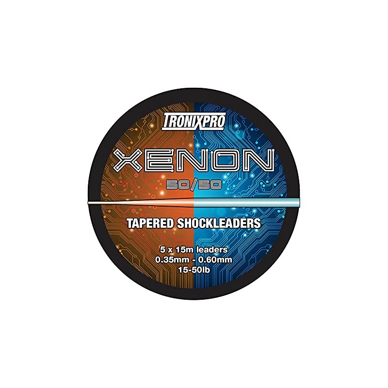 Tronixpro Unisex's Xenon Tapered Leader 50/50 Fishing Line, Orange/Clear, 15m