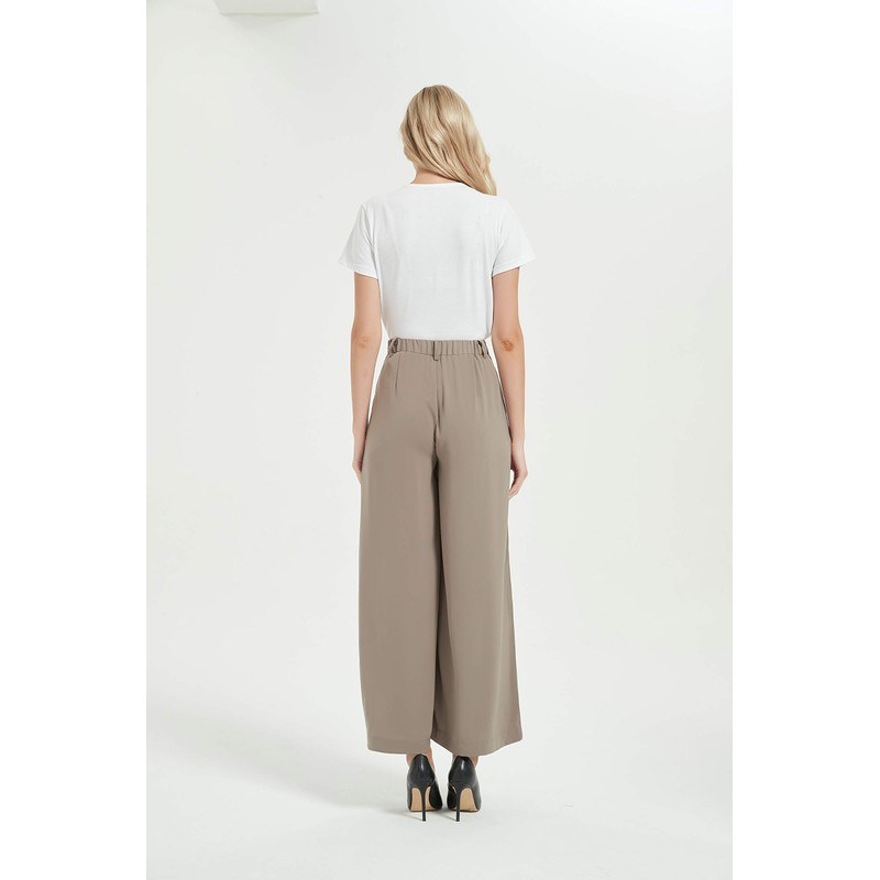 Tronjori Women High Waist Casual Wide Leg Long Palazzo Pants Trousers Regular Size(XL, Mocha Short)